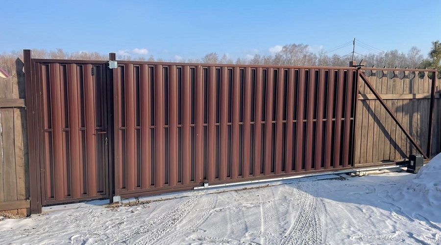- Если есть широкий подъезд и вы не против открывающихся наружу створок — можно рассмотреть распашные ворота.