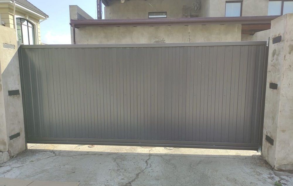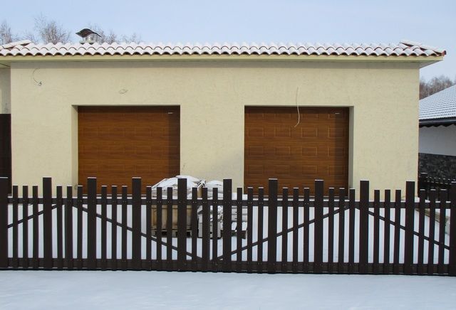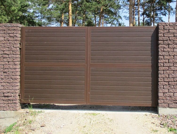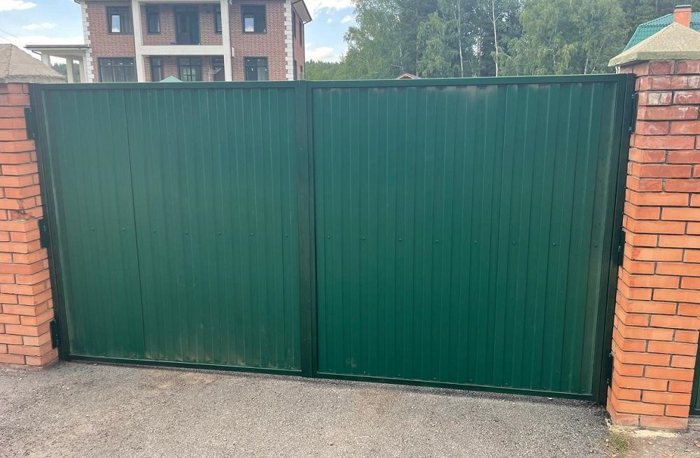 - Если есть широкий подъезд и вы не против открывающихся наружу створок — можно рассмотреть распашные ворота.