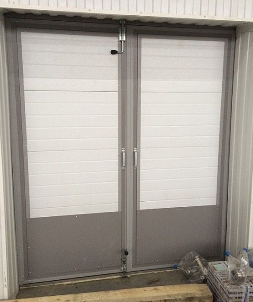 Материалы: Листы из оцинкованной стали с наполнителем из пенополиуретана. По контуру установлен эластичный уплотнитель. Возможна установка окон или калиток.