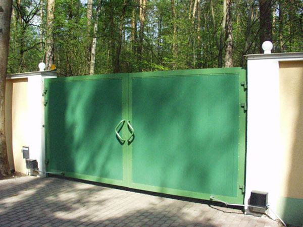 - Распашные ворота с приводами на каждую створку.